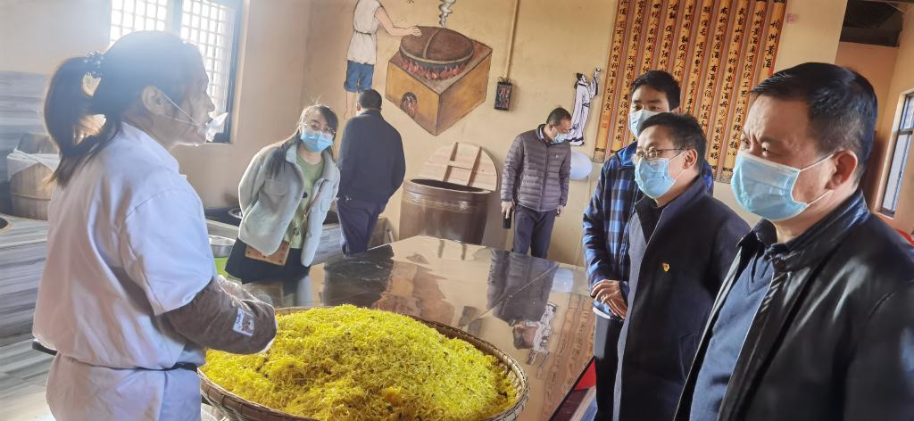 活动期间,在蒿口村参观了一些乡村振兴企业。在武当道菊产业园,对武当道菊的产品及产业发展,金志雄书记和药学院专职组织员谢勇同志等人针对道菊的基源鉴定、产品的多元化等方面提出了自己的见解。另外,以徐靖老师为代表的无党派人士也参观了乡村振兴企业中的豆油筋生产车间、菊花酒和均州黄酒生产展示馆。针对他们的产品及工艺提出了自己的想法和建议,并积极采购特色产品。