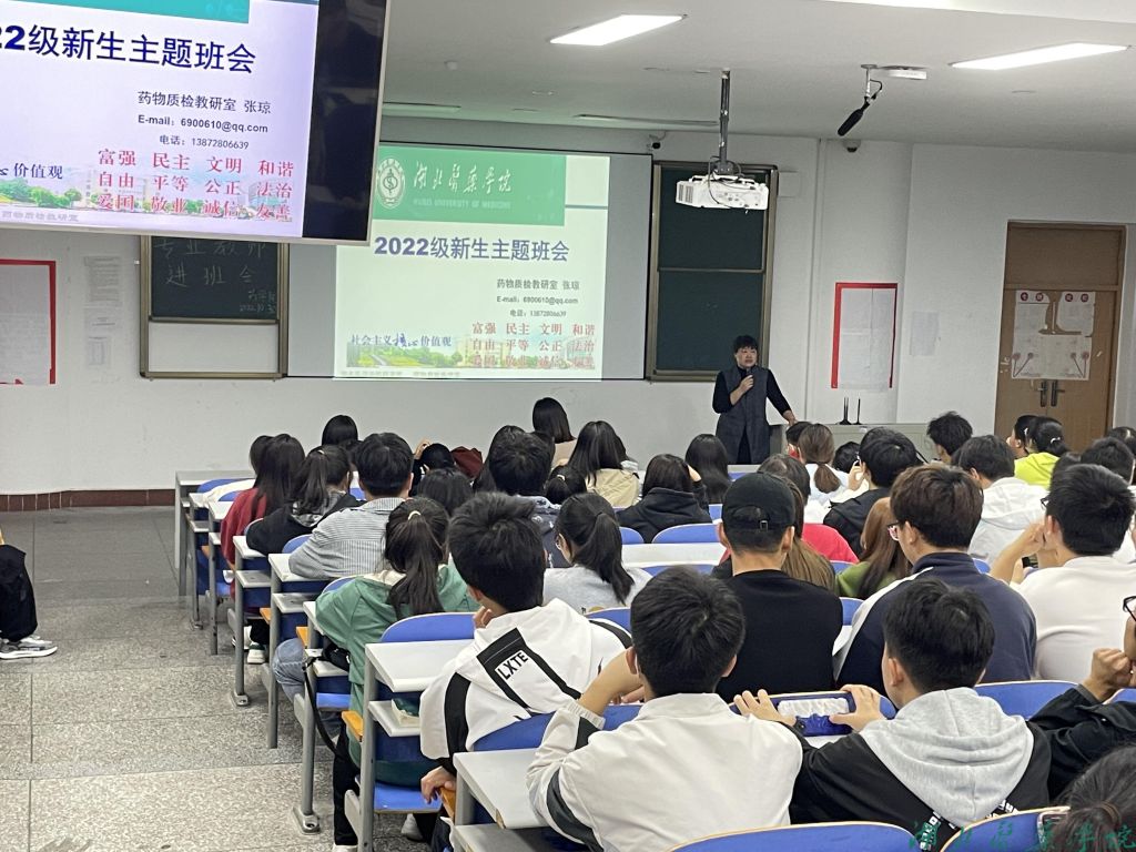 本网讯(通讯员王艳红徐璠婧)10月30日晚上6:30,药学院在5412教室开展“专业教师进班会”主题活动,药学院2022级全体学生参加,药物质检教研室主任张琼老师、制药工程教研室主任邱婧然老师和中药教研室青年博士何雪莱老师应邀参加。