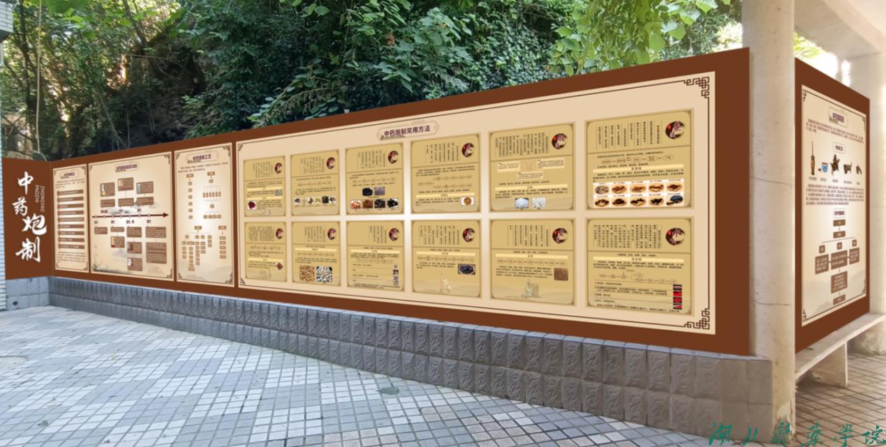 在药学院院长李飞的倡导与协调下,药学实验室协同中药学教研室、药物制剂教研室对内容、版面、配图和颜色等进行多次优化调整,于8月31日完成了中药炮制文化展板的安装。