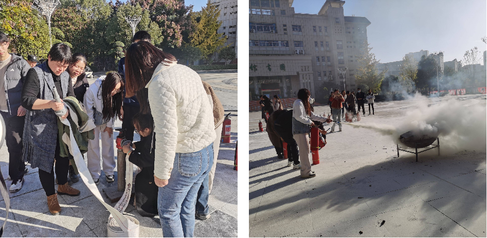 活动邀请保卫处莫小波进行消防安全知识培训,他首先介绍了校园消防安全的重要性,讲授了消防安全基本常识、火场逃生的自救和互救方式、初期火灾的扑救方法和灭火器的使用方法,并结合近年来校园发生的典型火灾案例,对教学楼、宿舍等场所如何安全用火用电、如何快速扑救火灾的方法、如何正确在火场逃生等消防常识进行了详细讲解。通过现场实操,各位老师熟练掌握了消防水带和灭火器的使用。