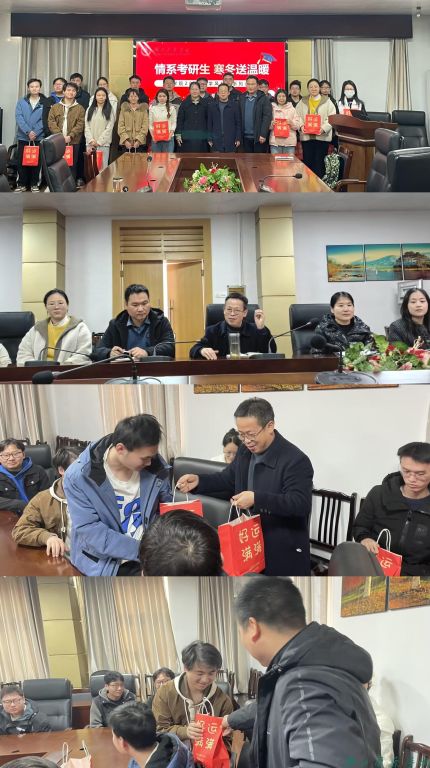 本网讯(通讯员 胡东辉)为进一步推进我院学风建设系列活动,缓解2024届考研同学们考研冲刺期的紧张感,使考研学子以平稳的心态迎接考试,鼓励同学们在考研的最后阶段做好充分准备。药学院于12月8日上午在学院会议室举办了2024届毕业生考研冲刺慰问暨座谈会,分党委书记金志雄、副书记李俊敏,辅导员王艳红、徐璠婧、胡东辉及各毕业班考研同学代表参与本次动员会。