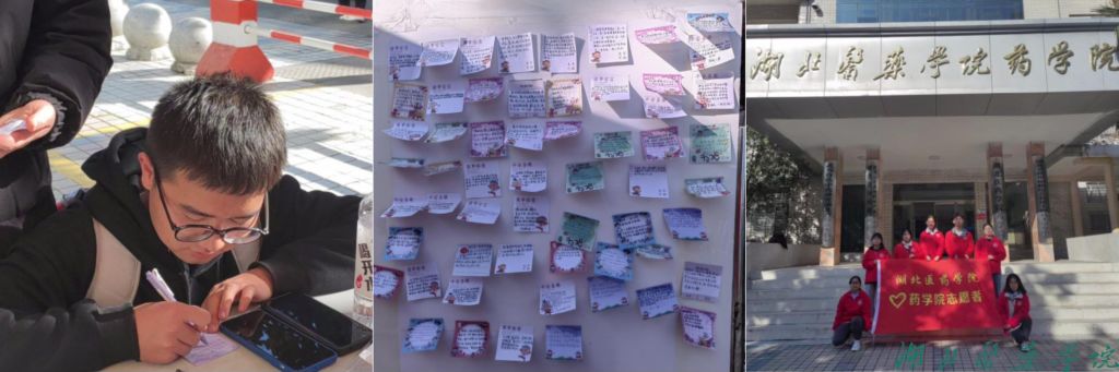 活动开始前,志愿者们提前到达药学院前准备物资布置场地。参加活动的同学在便利贴上写下对学姐学长的真切祝福和期望,并贴到展板上。这其中承载的不仅是同学们对考研学姐学长的心意,也是对他们的肯定和鼓励。