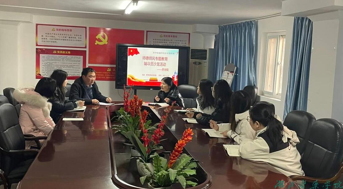 本网讯(通讯员 徐璠婧 王艳红 胡东辉)为落实立德树人根本任务,加强辅导员队伍思想政治引领,坚持师德师风第一标准,立规矩明底线,提升辅导员队伍的整体素养,药学院于12月19日在党员活动室召开辅导员沙龙——师德师风专题教育会,分党委副书记李俊敏主讲,全体辅导员和兼职班主任参加。