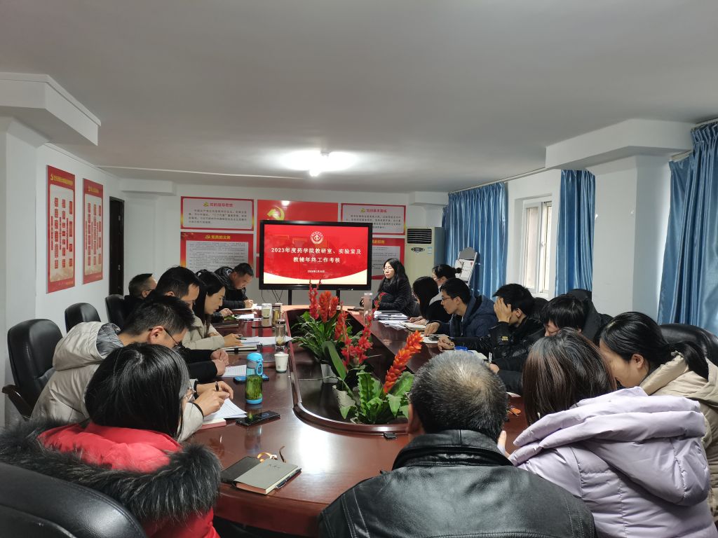本网讯(通讯员 姚虔)为加强教研室、实验室建设,充分调动教研室、实验室教师的工作热情和积极性,提高教研室、实验室工作质效。1月16日下午,药学院在学院二楼会议室对教研室、实验室和实验教辅人员开展了2023年度工作考核,考核组成员包括学院领导及管理科室负责人。