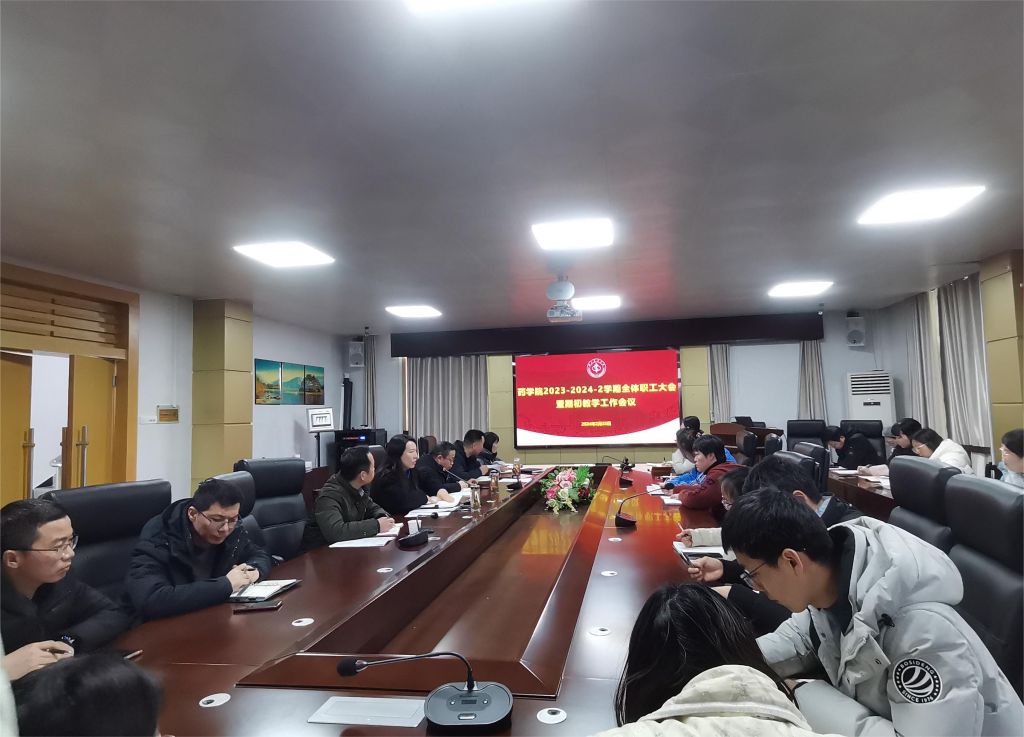 本网讯(通讯员 刘丽)2月25日下午,药学院在六楼会议室召开2023-2024-2学期全体职工大会暨期初教学工作会。学院全体领导、教职工参加会议,药学院院长李飞主持会议。