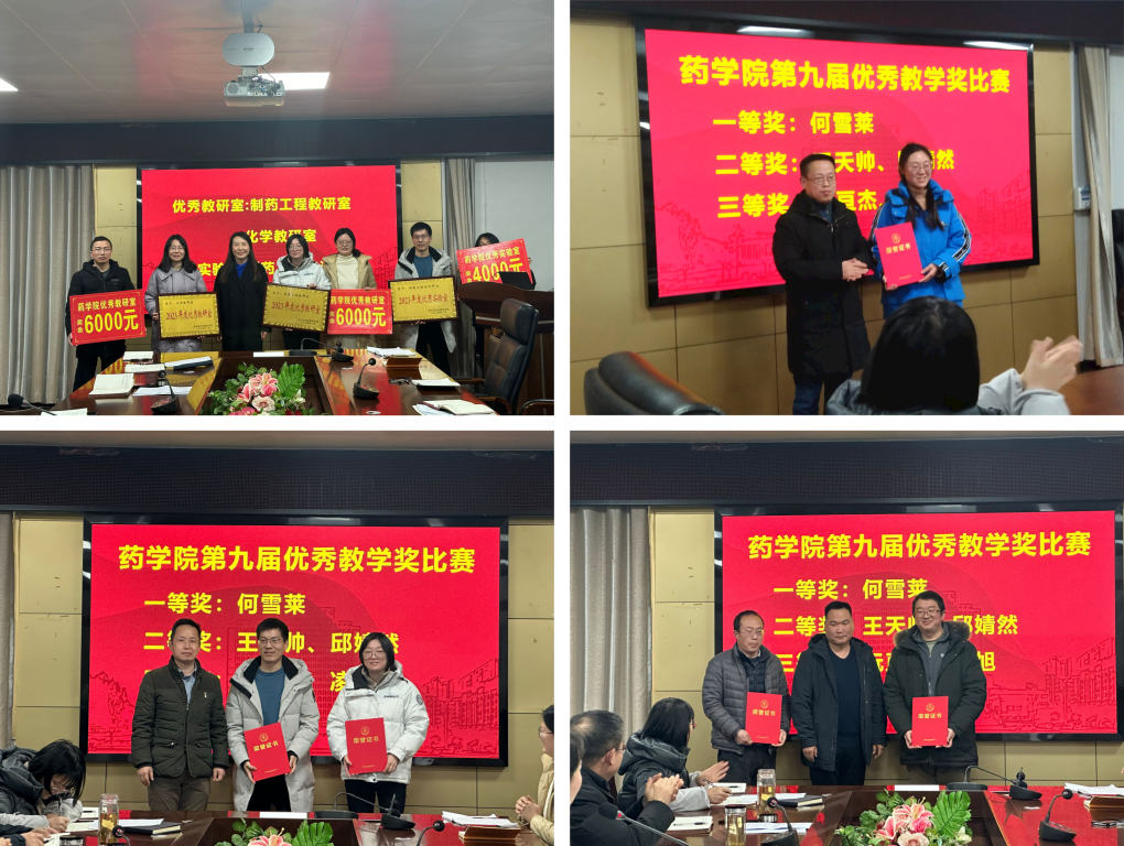 首先,对药学院第九届优秀教学奖比赛获奖教师和药学院2023年度优秀教研室、实验室进行了颁奖,鼓励各科室与个人在新的一年继续发挥优势,为学院的教学科研工作做出更大的贡献。