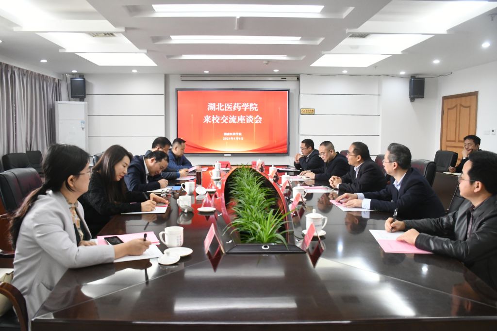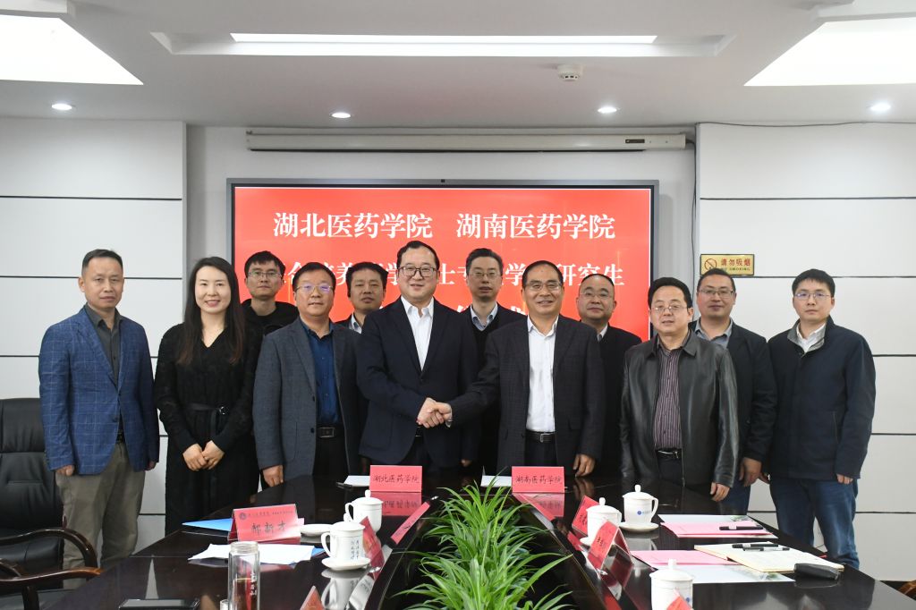 本网讯(通讯员 唐豫媛)4月8日,湖北医药学院原党委书记、鄂西北环境与健康产业技术研究院院长涂汉军带队前往湖南医药学院对研究生联合培养工作进行交流,湖南医药学院党委书记张在其,党委委员、副校长吴卫华以及科技处、药学院等负责人参加交流座谈会,并在会上签署联合培养药学硕士专业学位研究生协议。