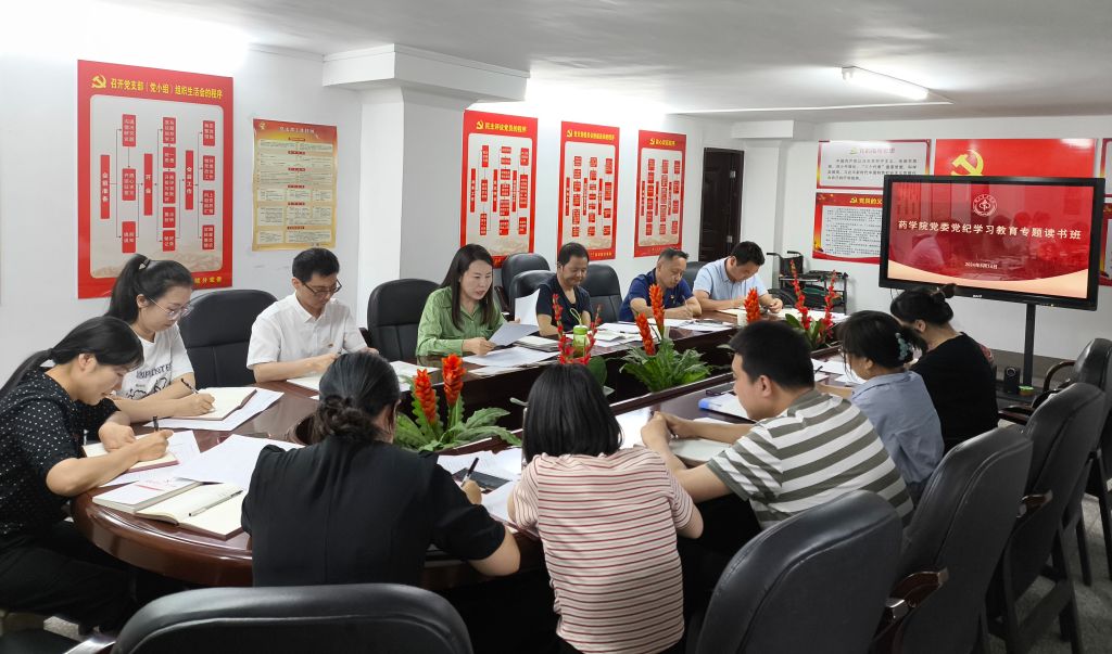本网讯(通讯员 唐豫媛)为进一步加强党的纪律建设,推动全面从严治党向纵深发展,药学院党委于5月14日-16日,开展党纪学习教育专题读书班。学院领导班子成员、党建组织员、支部书记、支部委员参加读书班学习。