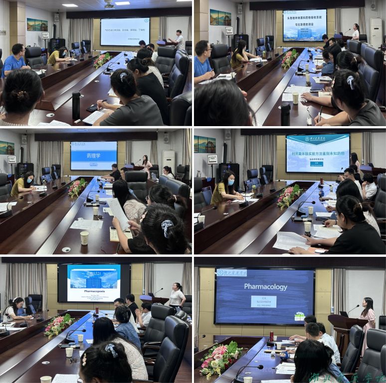 本次预讲活动分别由王振忠博士讲解了《原子吸收分光光度法》、《气相色谱分离龙脑、异龙脑、薄荷脑、丁香酚》(实验课),陈悦博士讲解了《头孢唑林钠原料药物吸收系数与比旋度的测定》、《Pharmacopoeia》,江英博士讲解了《肾上腺皮质激素类药物》、《利用离体肠实验方法鉴别未知药物》(实验课)和《Pharmacology》的相关内容。每位教师预讲结束后,在场教师们从教学设计、教学方法、课堂管理等多个方面提出了中肯的意见和建议。