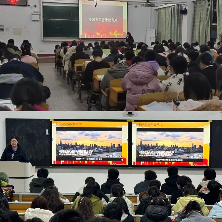 各班辅导员为学生们介绍了学校的消防安全制度,特别强调了寝室用电安全,提醒同学们不要私拉乱接电线,避免在寝室吸烟或使用烟具等。通过观看视频、唱消防安全歌等形式,宣传防火、放电、防踩踏、火中逃生、灭火器使用、报警等消防安全知识,增强防火安全防范意识,提高自护自救能力。