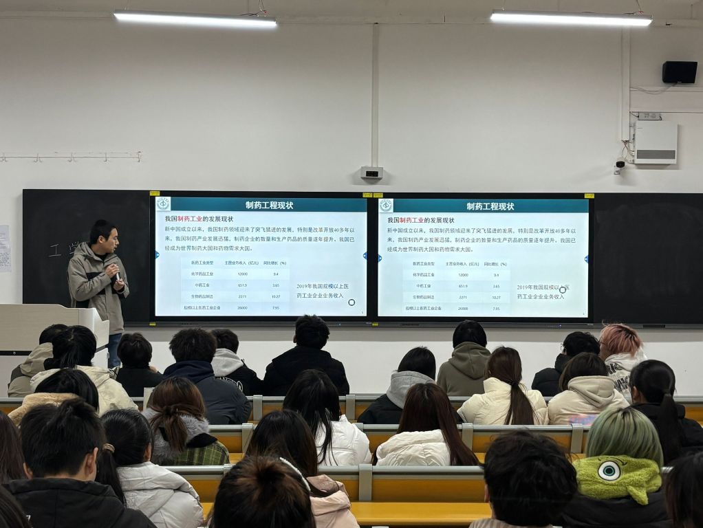 首先,邓德鑫通过回顾自己从本科到博士的成长及药企实践经历,带领同学们认识制药工程专业的特点与挑战,从化学合成、药物制剂、药理分析、生产工艺优化等方面深入解析知识体系,为同学规划学业,激励打牢基础、探索科研。