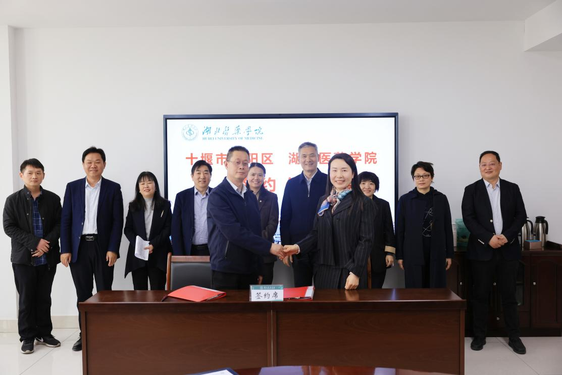王光勇和李飞代表双方签订合作协议。双方表示将以此次签约为契机,充分发挥各自优势,深化校政合作内涵,共同推动郧阳区生物医药产业高质量发展,为十堰市“一主四优多支撑”现代产业体系建设注入新活力。