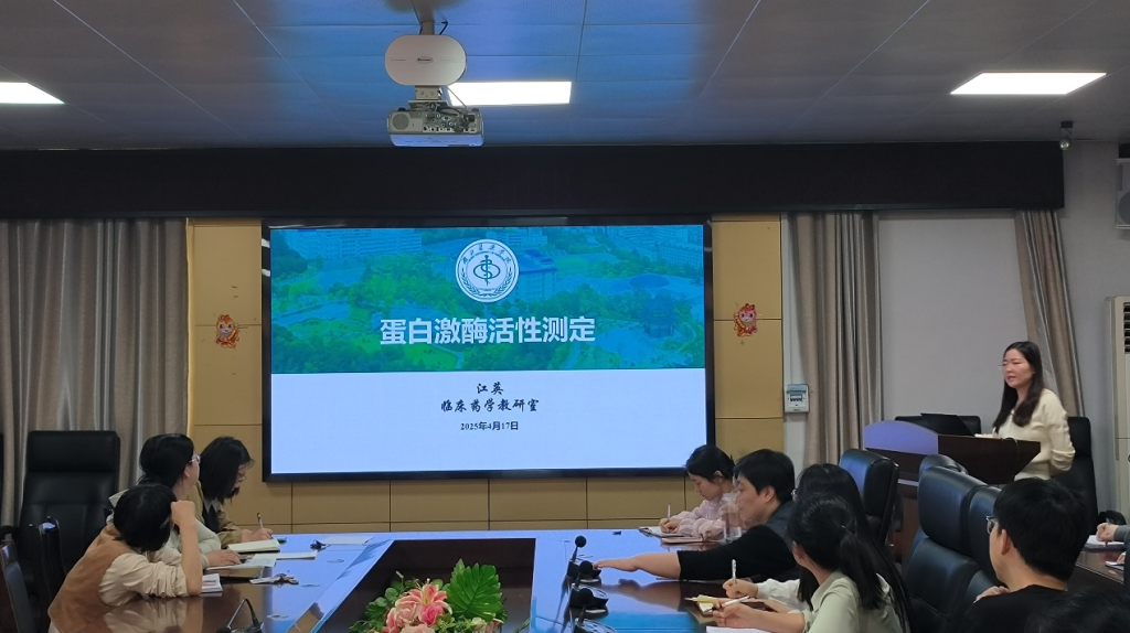本网讯(通讯员 江英)2025年4月17日,湖北医药学院药学院教工第一党支部在药学院六楼会议室举办了第八期“药苑圆桌派”特色活动。活动邀请临床药学教研室江英博士作题为“蛋白激酶活性测定”的报告,教工第一/二党支部党员群众参加了活动。