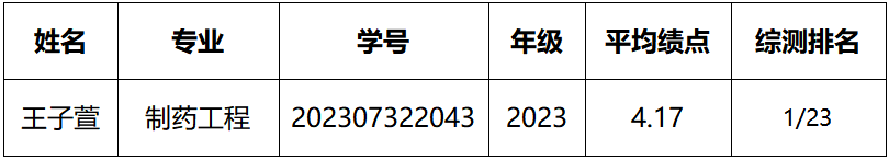 根据学校《关于开展2024-2025学年国家奖学金评审工作的通知》精神,经评审复核,一名拟推荐人选不符合申报条件,现根据药学院国家奖学金答辩成绩做出如下递补调整,并予以公示。