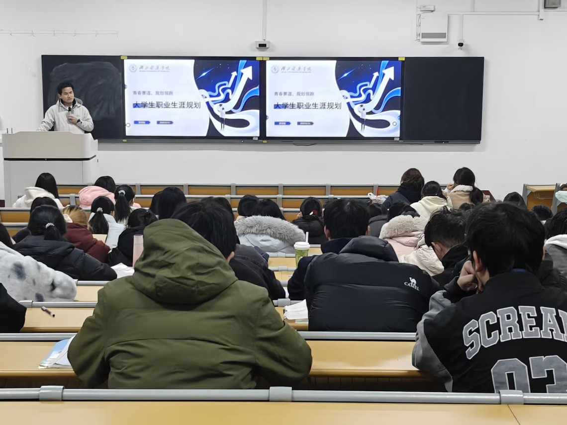 本网讯(通讯员 王艳红)为帮助药学院学子明确职业发展方向,提升就业竞争力与职业规划意识,11月14日,药学院在1401教室举办大学生职业生涯规划宣教活动。本次活动由药学院辅导员彭红星担任主讲嘉宾,药学院2025级全体学生参加此次活动。