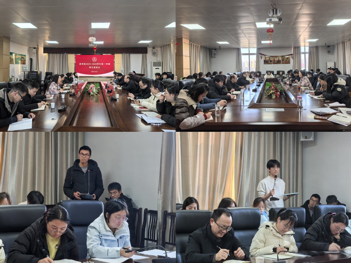 本网讯(通讯员 姚虔)药学院于1月13日上午在学院六楼会议室召开了2025-2026-1学期师生座谈会。学院领导、各教研室和实验室主任、管理科室负责人及各班学生代表共四十余人参会,座谈会由药学院院长李飞主持。