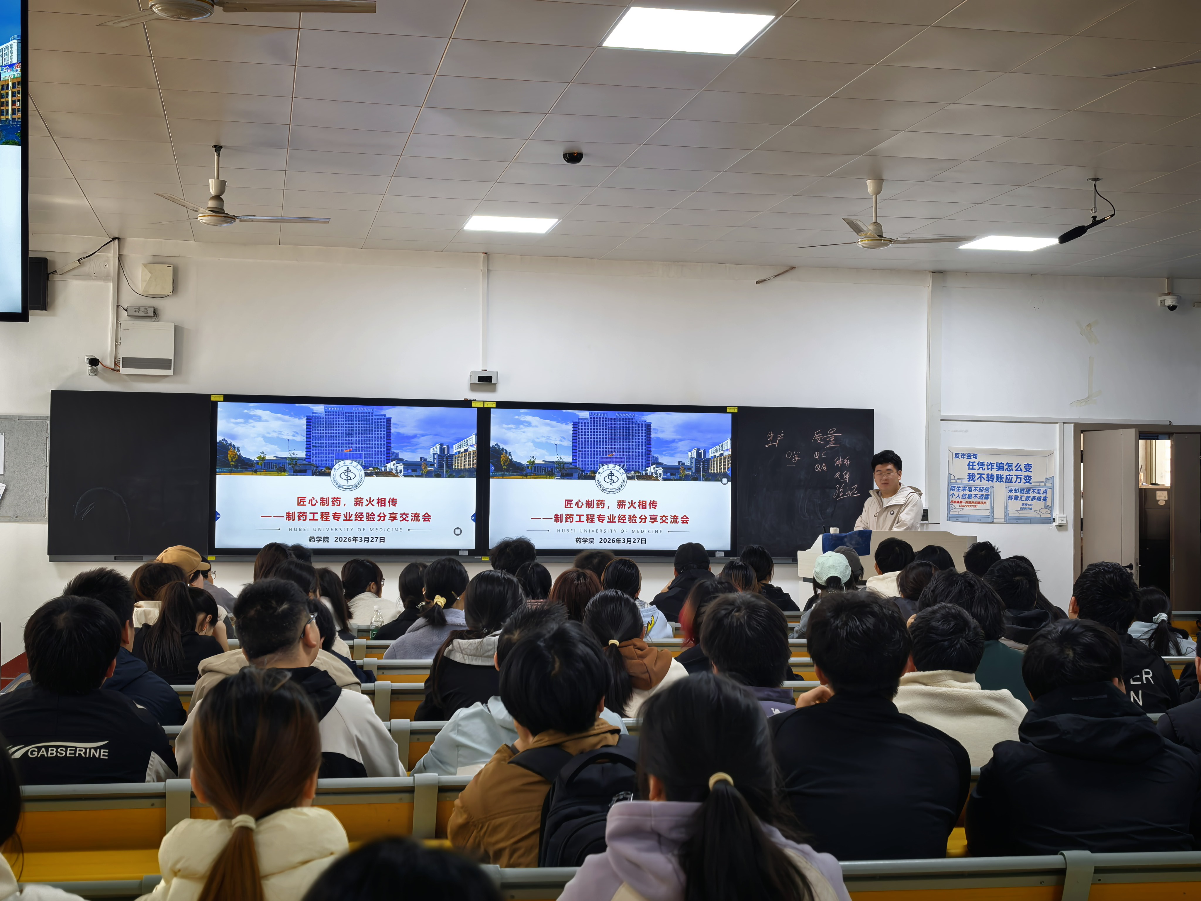本网讯(通讯员 胡东辉 罗寒)为进一步加强学风建设与就业育人工作,近日,由制药工程教研室与学院学工处共同组织,特邀2020级制药工程专业优秀毕业生何俊返校,面向制药工程专业在校生开展就业宣讲交流会。本次活动旨在发挥优秀校友的榜样引领作用,帮助本专业学生认清行业形势、明确发展目标,提升就业准备的主动性与针对性。