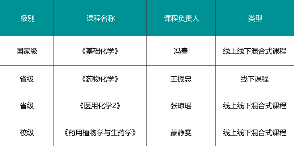 药学院一流课程一览表